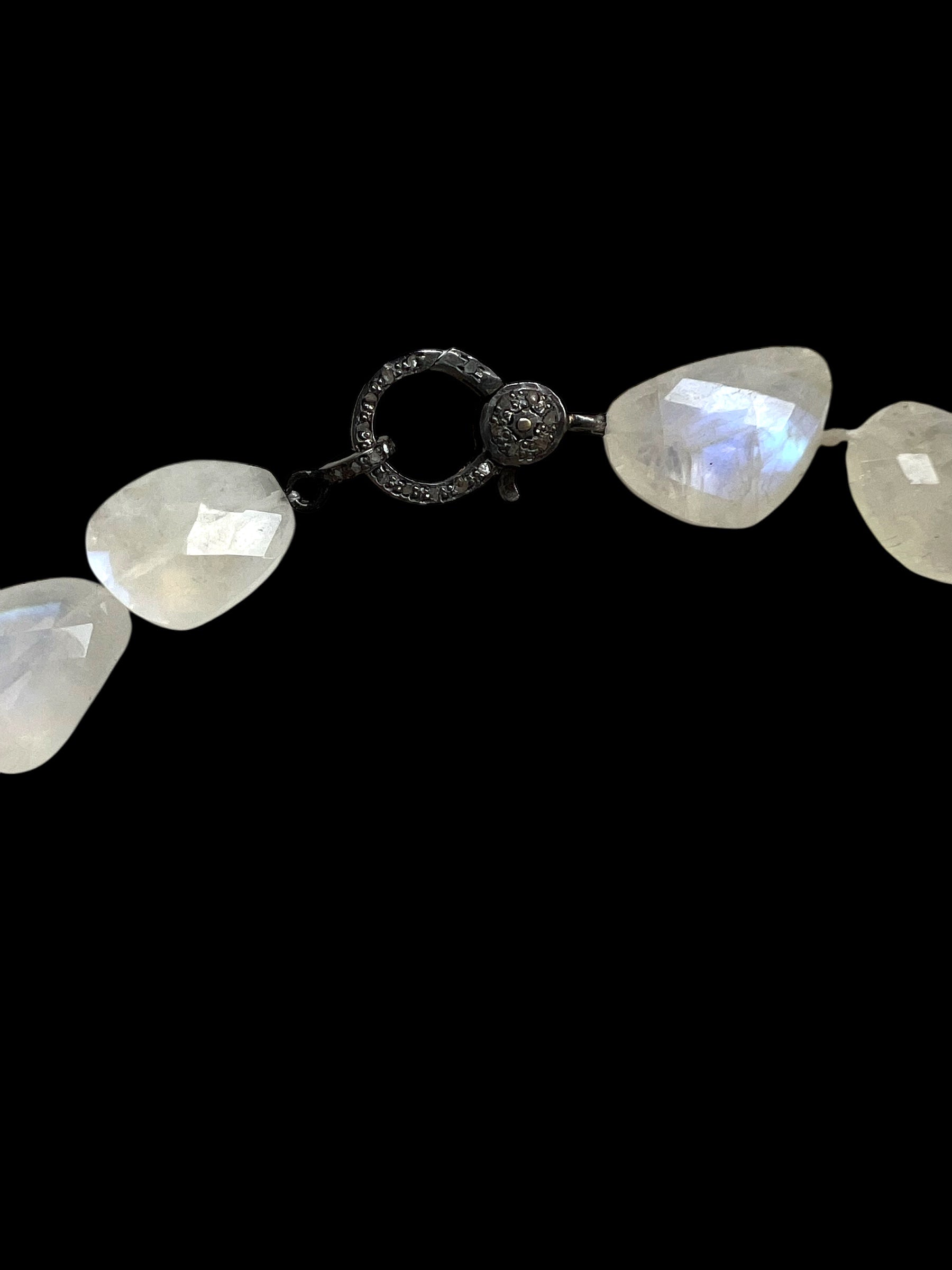 AAAA quality large moonstone nugget necklace with sterling silver and black diamond clasp