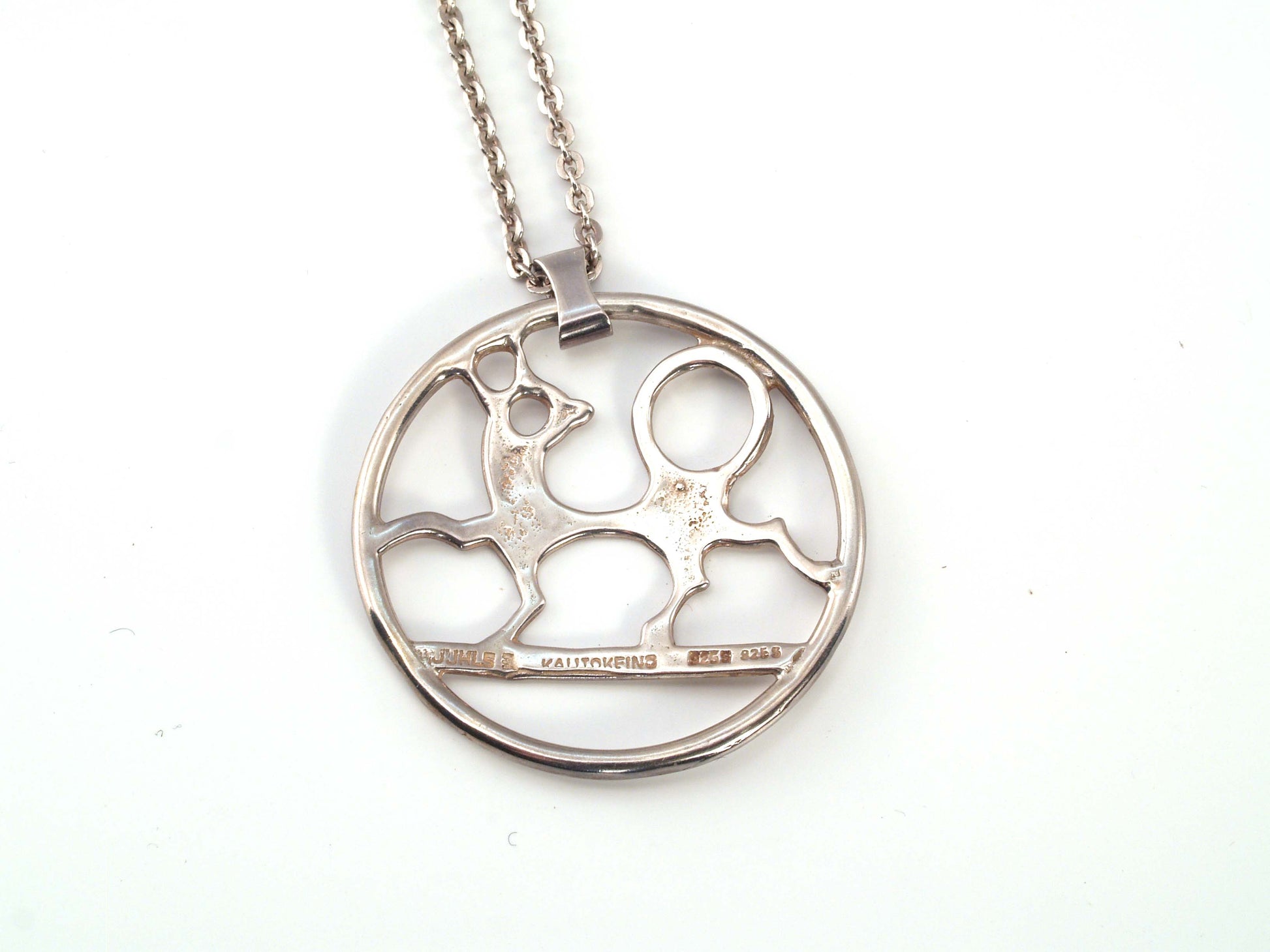 This Vintage Frank and Regine original castings Juhls pendant is in perfect condition. Based on the 'Fairytale' series This pendant is a playful image of a reindeer. This is a rare item and comes with the original chain. Frank and Regine Juhles are from Norway. Hallmarked in Sterling Silver with the word Kautekeino which is a municipality in Norway. This is a collector's piece and should not be passed up!