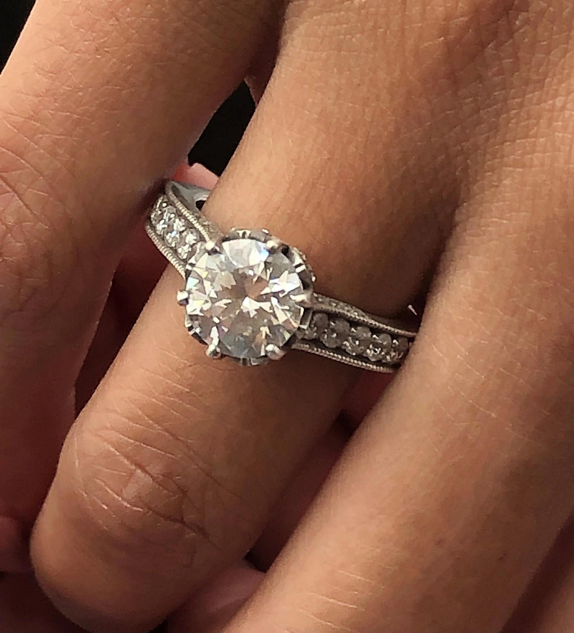 How gorgeous is this? The snowflake idea came to me when I was thinking about the 6 points of the snowflake becoming 6 prongs of a setting for a diamond. You can see my signature style always allows for a band to be put underneath. This ring is a very sturdy piece of jewelry, and for someone who appreciates a hefty metal presence that sits perfectly on your hand. I provide the setting and you provide the diamond! We certainly are available to put any gemstone in this setting! Platinum or 18Kwhite gold only.