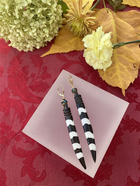 Striped Bone Earrings with gold fill findings and inlaid prayer beads