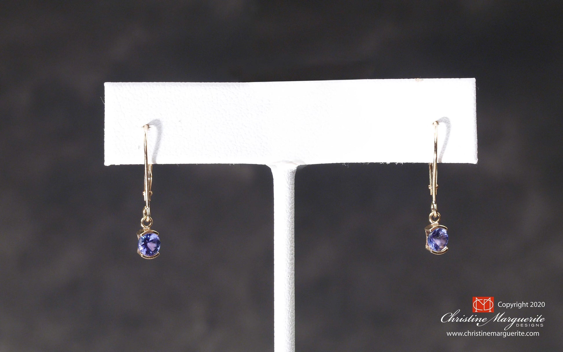 These are lovely. The demi bezel is such a nice way to set a faceted round gemstone because it lets the light in. This is important in a pair of earrings. Solid 14KY gold findings hand set gemstones in my studio and my favorite earring style with a leverback. These sparkle like mad!!