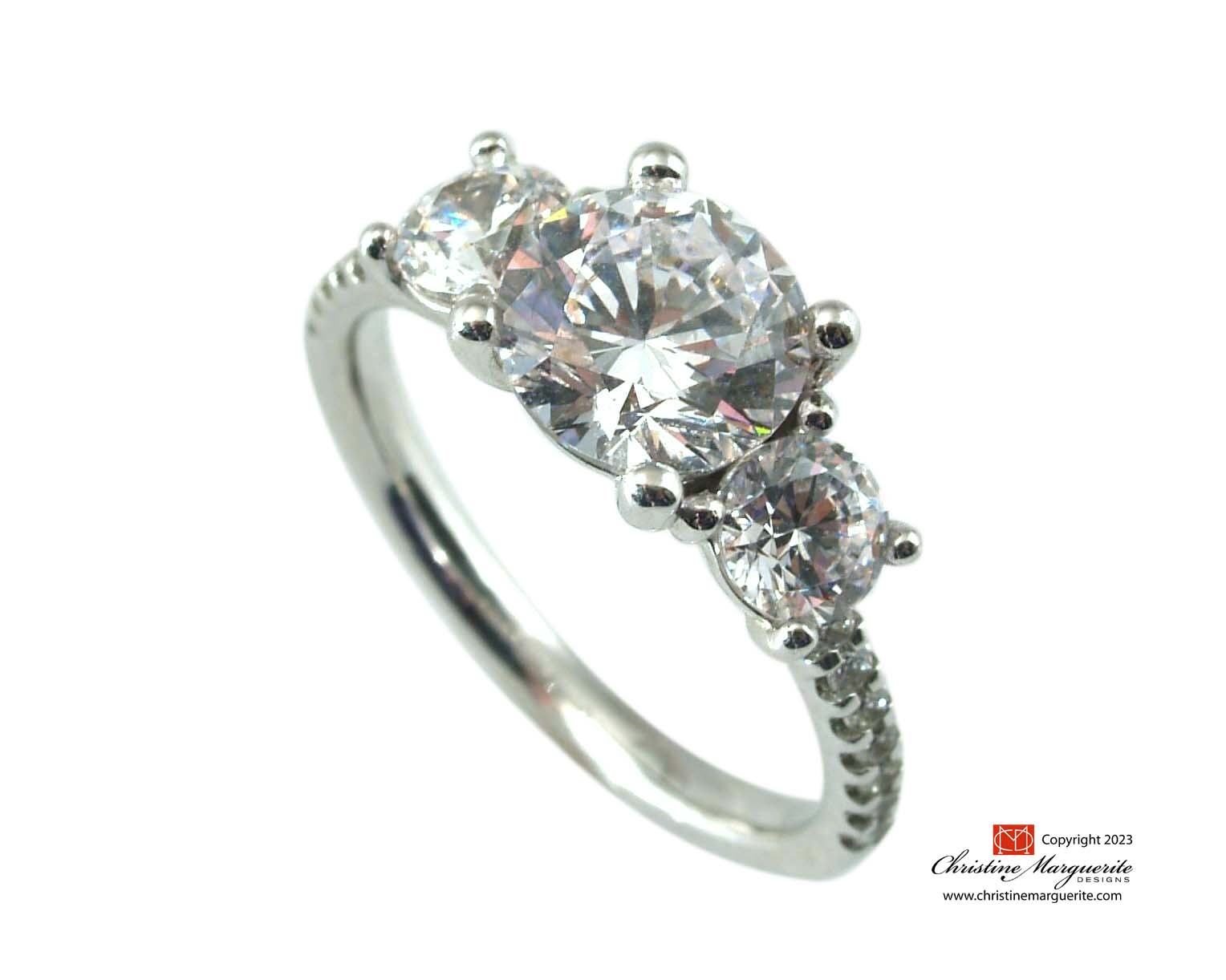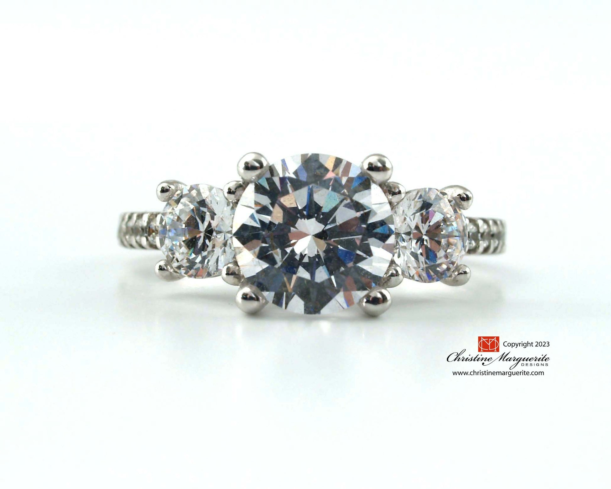 This lovely, delicate ring is perfect for a timeless, classic look. The 2 side diamonds are each .25 carat weight, G/H color SI1 in quality and are included in the price. The diamonds on the band are beautifully set. Keep in mind you can always add some sapphires or rubies to really make this ring your own unique design. This is also a great design to include your partner's birthstone in your ring!